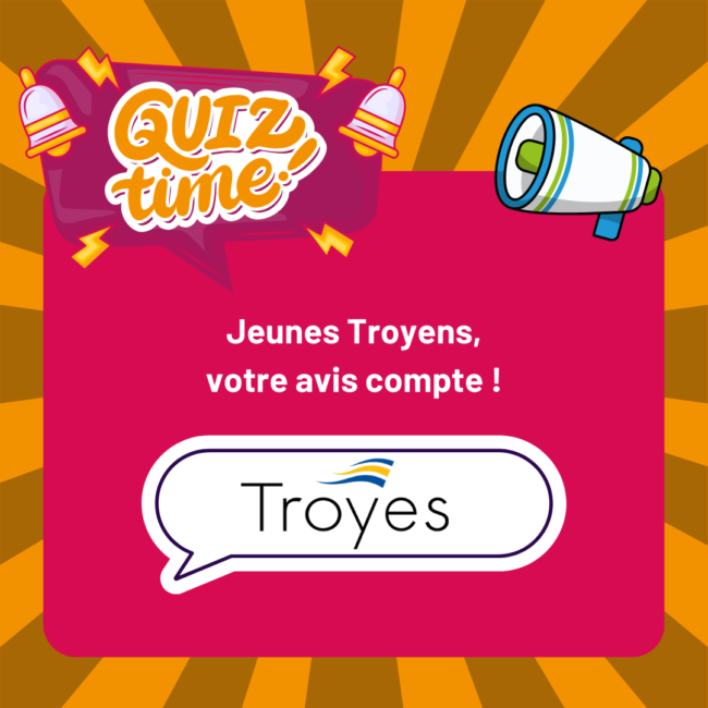 Jeunes Troyens, votre avis compte ! La Ville de Troyes lance une grande consultation pour améliorer les structures de proximité (maisons de quartier, Espaces Ados, chantiers jeunes, accompagnement scolaire, etc.). Si vous avez entre 11 et 25 ans, donnez votre avis en 3 minutes ! Du 3 au 14 mars 2025 Répondez au questionnaire en…